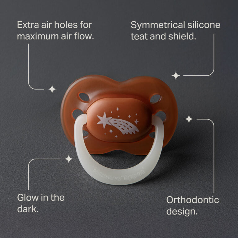- Signature decoration: These Tommee Tippee dummies are inspired by starry skies, and available in a range of calming, twilight tones.